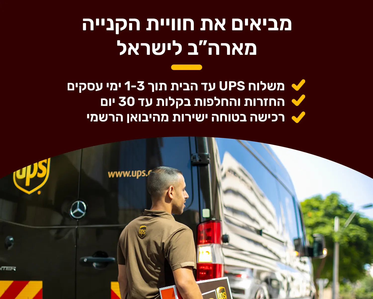 - משלוח UPS יוצא לדרך תוך יום עסקים אחד