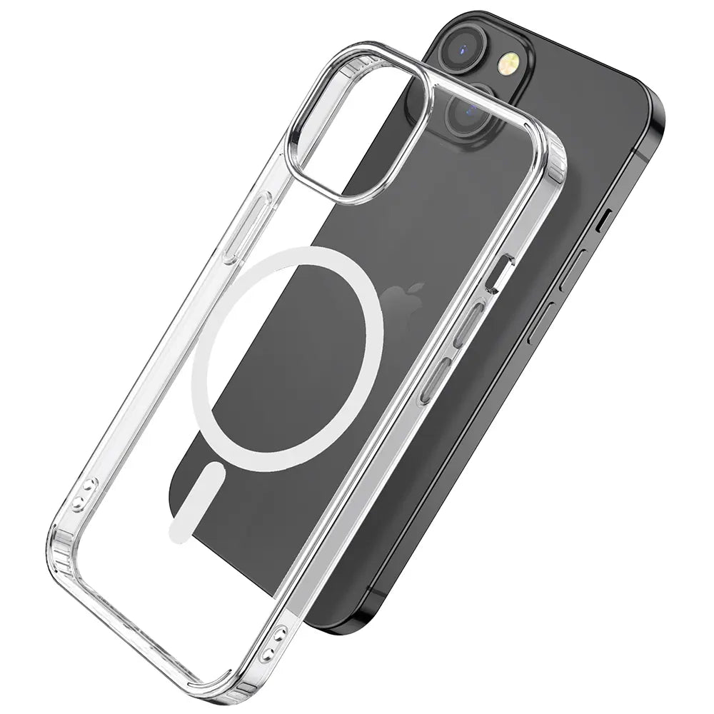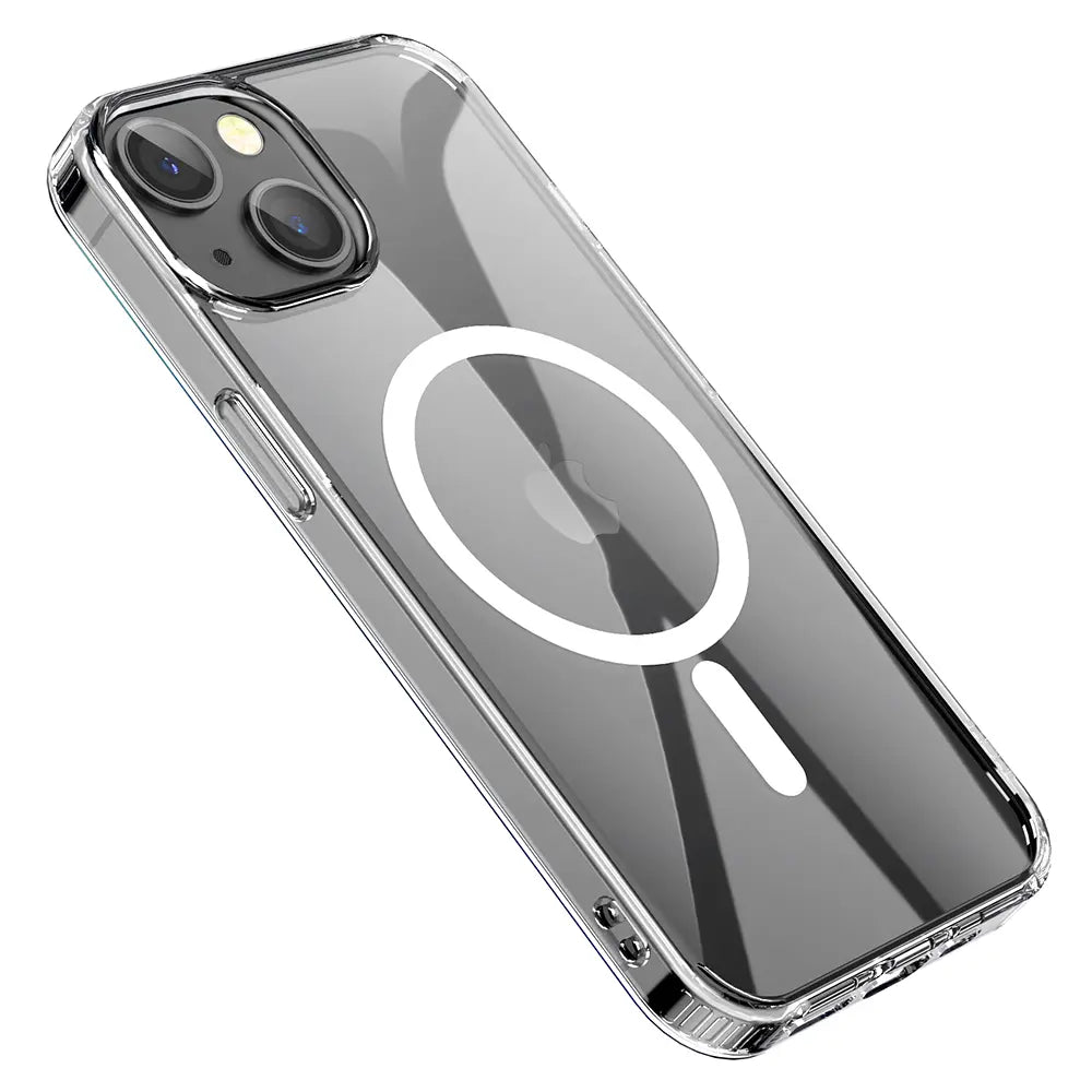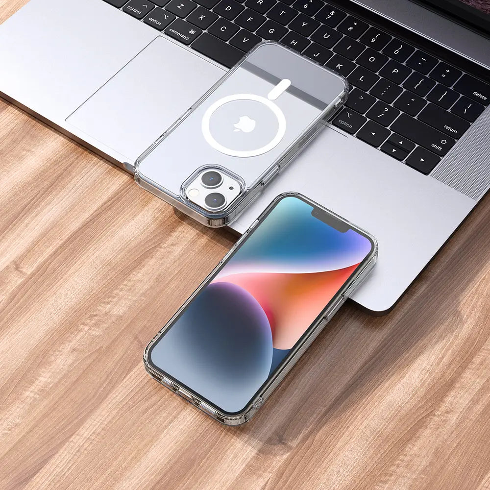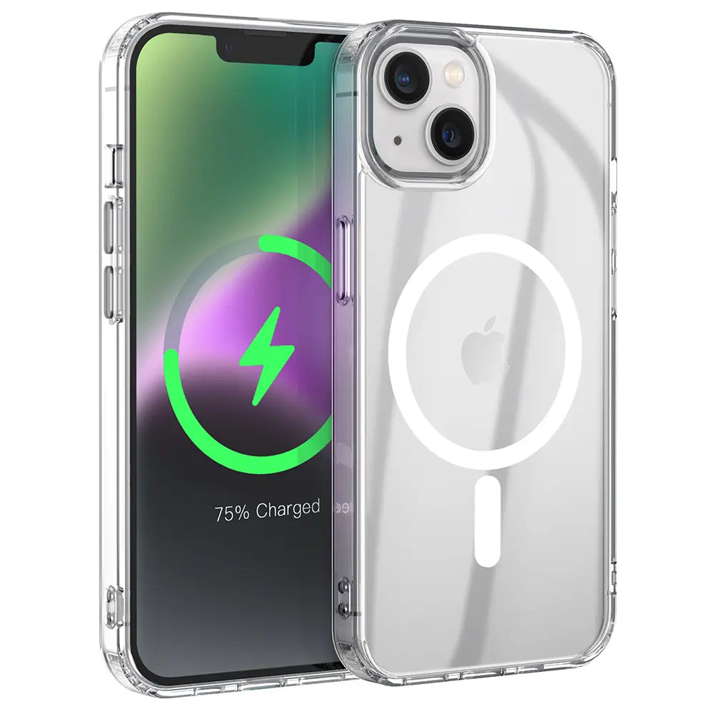 כיסוי לאייפון 14 עם מגנט מובנה לטעינה אלחוטית, הגנה מקצועית מפני נפילות, שקוף
