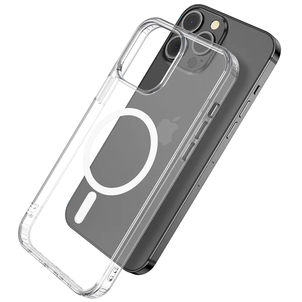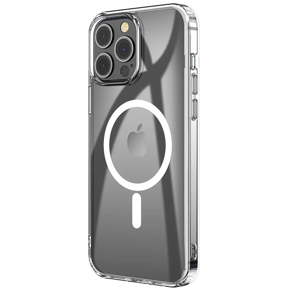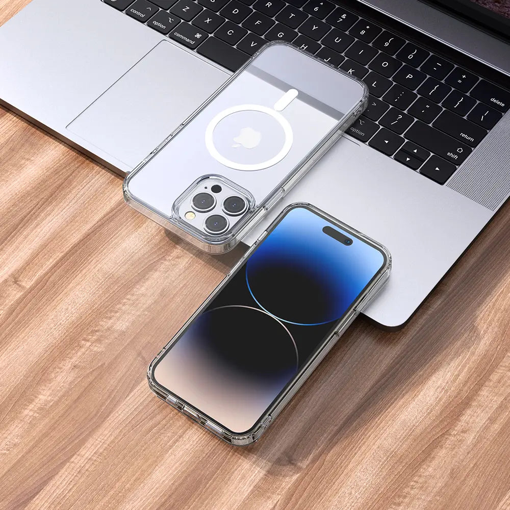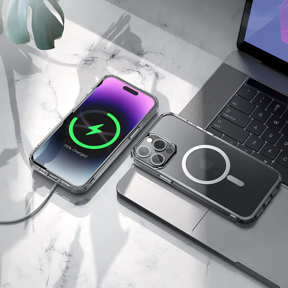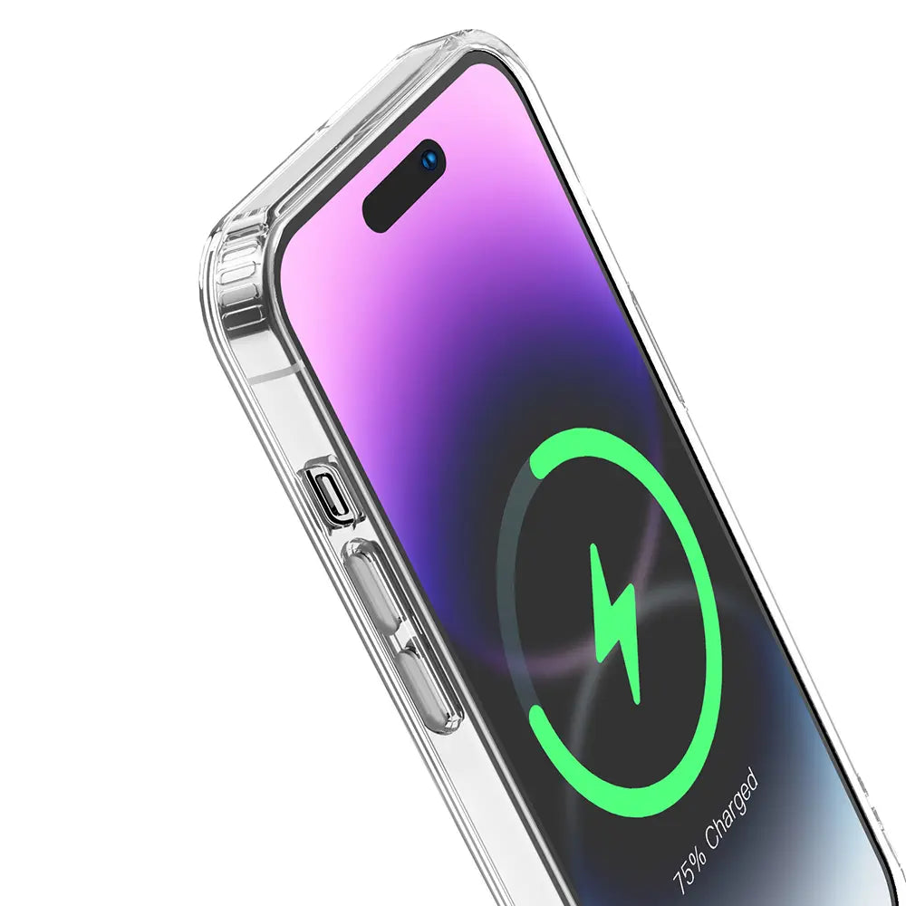 כיסוי לאייפון 14 פרו עם מגנט מובנה לטעינה אלחוטית, הגנה מקצועית מפני נפילות, שקוף