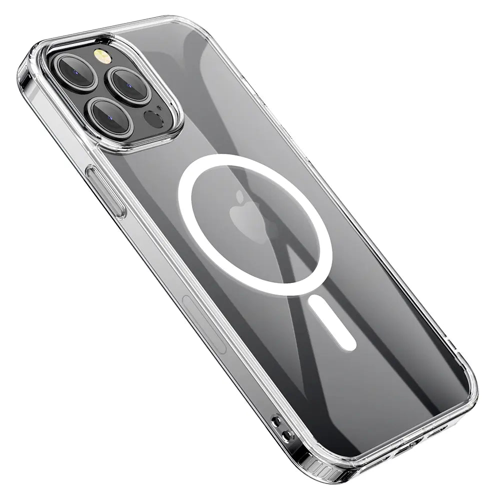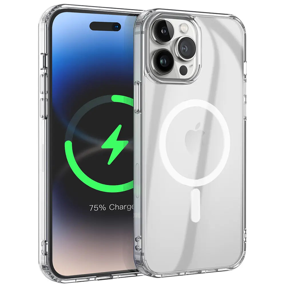 כיסוי לאייפון 14 פרו מקס עם מגנט מובנה לטעינה אלחוטית, הגנה מקצועית מפני נפילות, שקוף